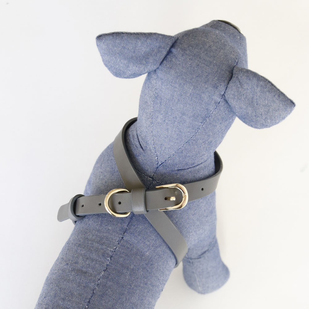 ヴィーガンレザー DOGハーネス クロス グレー